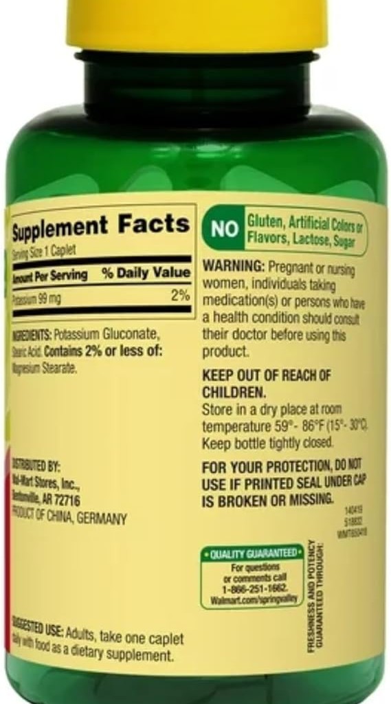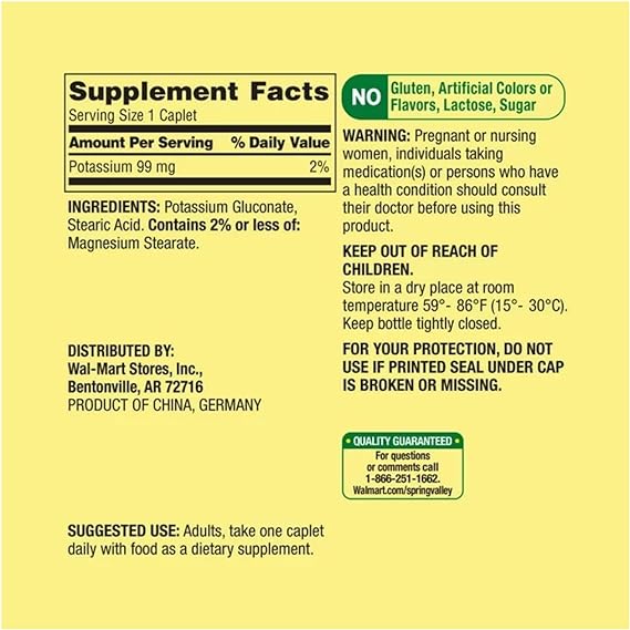 قرص پتاسیم Spring Valley Potassium 99mg اسپرینگ ولی (250 عددی)