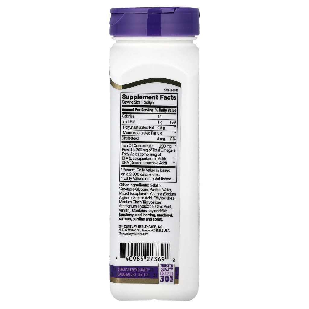سافت ژل کنستانتره امگا 21Century Triple Fish Oil 1200mg قرن 21 (90 عددی)