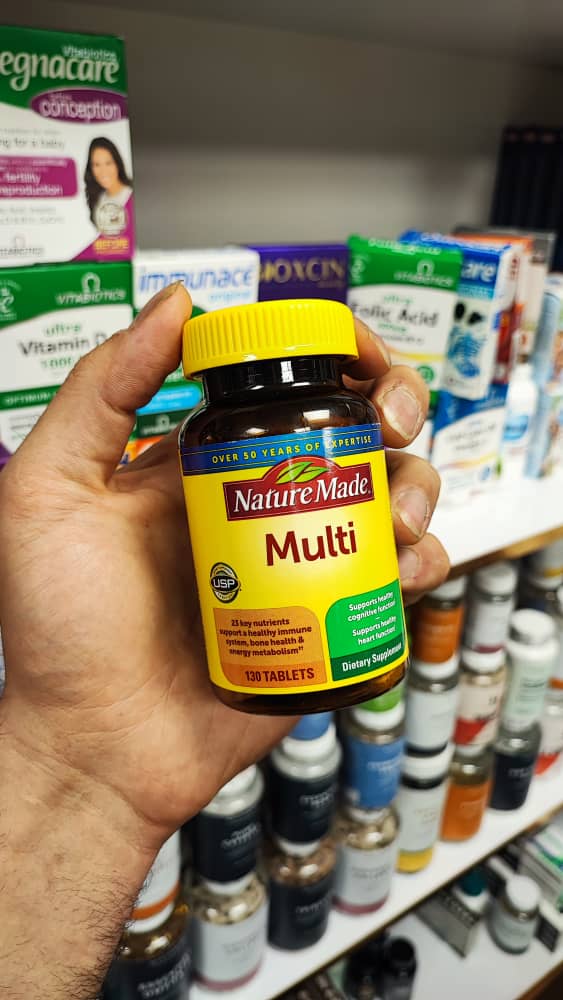 مکمل حمایتی تغذیه: حاوی یک بطری 130 عددی مولتی ویتامین Nature Made با قرص بدون آهن به مدت 130 روز.