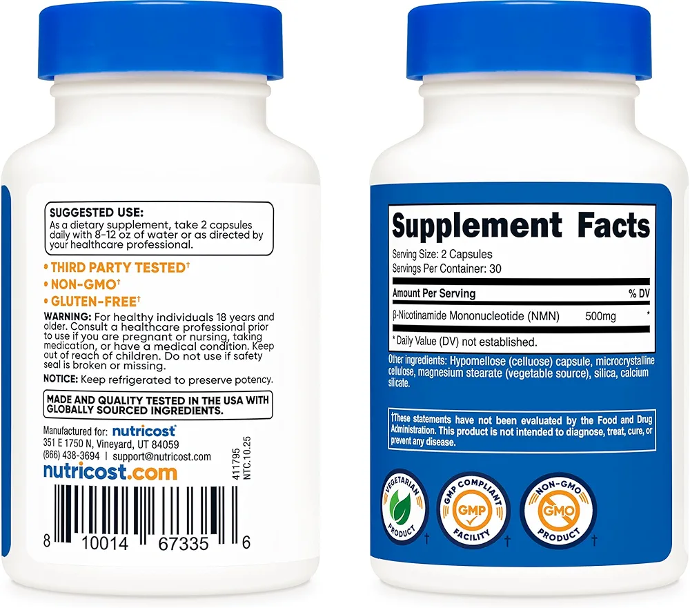 حاوی 500 میلیگرم نیکوتینآمید مونونوکلئوتید است که در بدن تبدیل به کوآنزیم NAD میشود و با ترمیم DNA و جلوگیری از آسیبهای سلولی به کاهش سرعت پیری و حفظ جوانی کمک میکند.