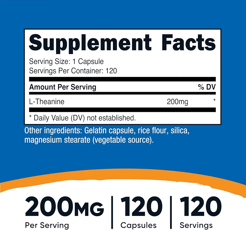 کپسول کاهش استرس ال تیانین نوتریکاست Nutricost L-Theanine 200mg (120 عددی)