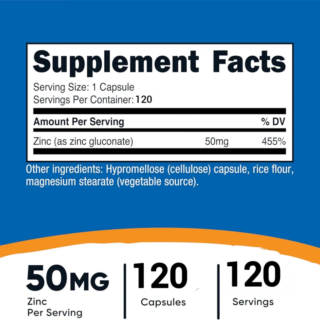 کپسول زینک گلوکونات نوتریکاست Nutricost Zinc Gluconate 50mg (120 عددی)