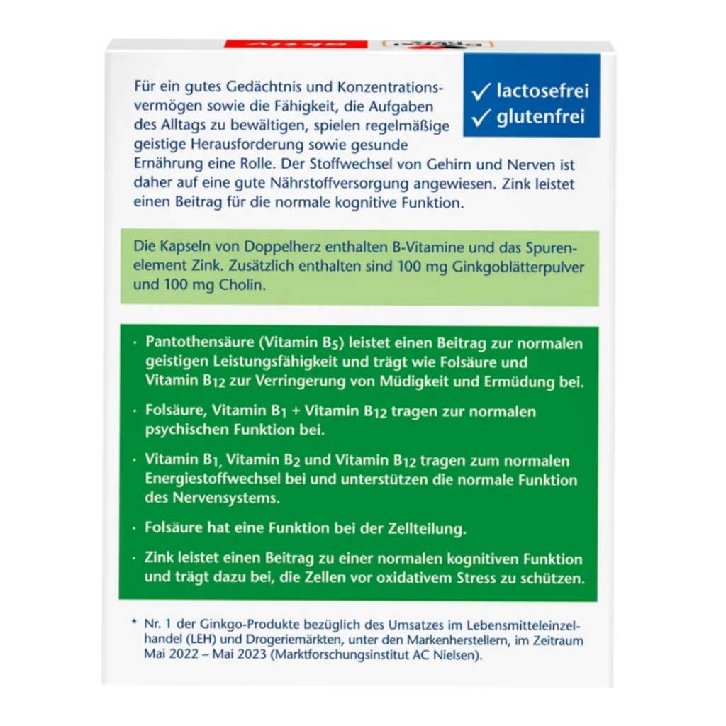 کپسول جینکو و ب کمپلکس دوپل هرز حاوی 100 میلی گرم عصاره گیاه جینکوبیلوبا و کولین در کنار ویتامین های گروه ب و زینک است.