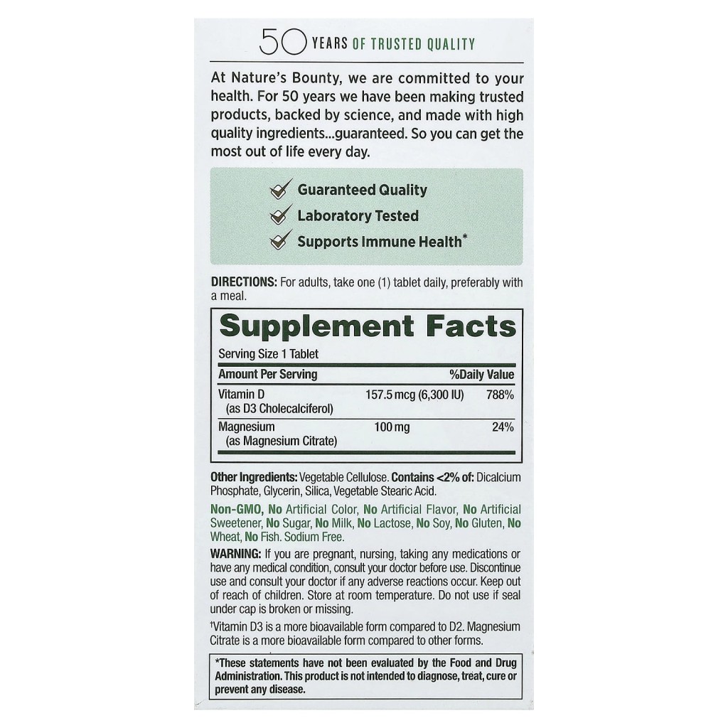 کپسول منیزیم سیترات Nature’s Bounty Magnesium Citrate & D3 نیچرز بونتی (90 عددی)