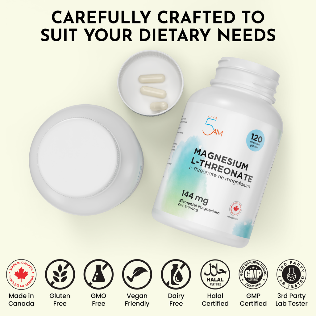 کپسول منیزیم ال-ترئونات Live 5am Magnesium L-Threonate 144mg (120 عددی)