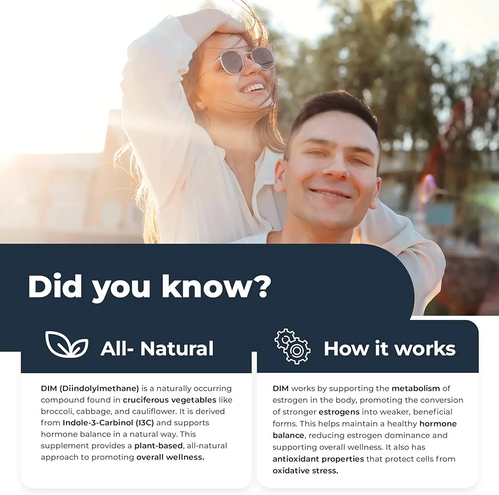 استروژن و سلامت وزن: مصرف DIM ممکن است به حفظ استروژن پایین، تسکین نفخ و قاعدگیهای نامنظم کمک کند. مکملهای DIM ممکن است در تعادل هورمونها نقش داشته باشند.